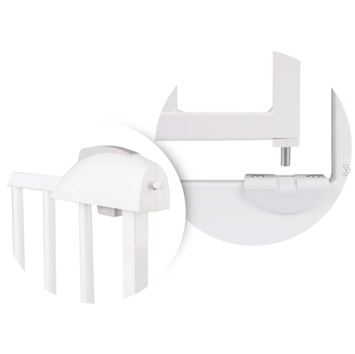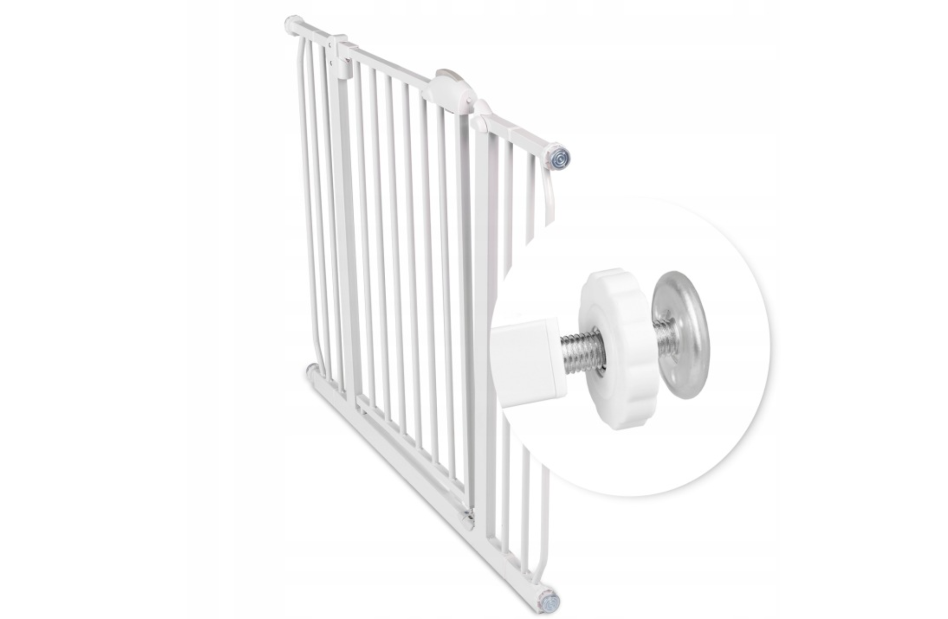 ✅ Zakres regulacji 75–105 cm sprawia, że bramka zabezpieczająca na schody biała 75-105 cm dopasowuje się do różnych przejść i pozwala na wygodne zastosowanie w wielu miejscach