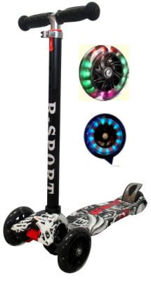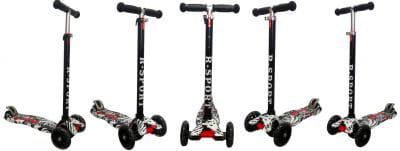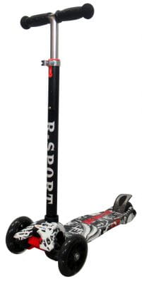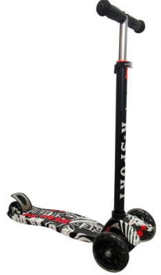 Wyjątkowe świecące koła LED dodają uroku podczas jazdy, a specjalny wzór grafitti sprawia, że każda hulajnoga jest unikalna. Bezpieczeństwo podczas jazdy zapewniają antypoślizgowe elementy oraz solidne wykonanie.