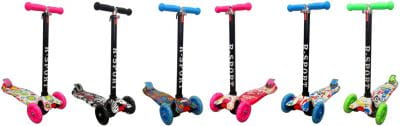 • Wyposażenie: Świecące koła przednie, Kauczykowe koła, Podwójne koło tylne, Wzmocniony hamulec nożny, Łożyska w kołach, Regulowana kierownica, Odpinana kierownica, Antypoślizgowe uchwyty, Wypukły wzorek na desce