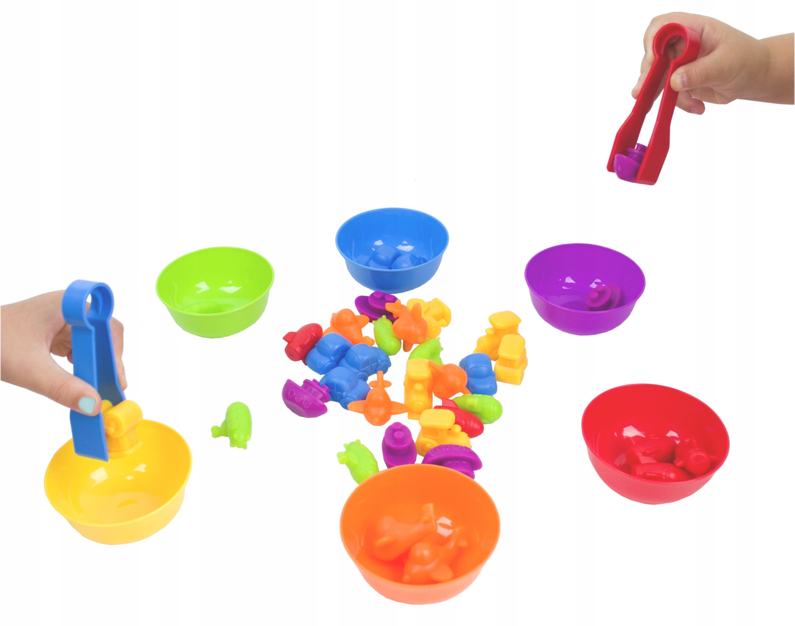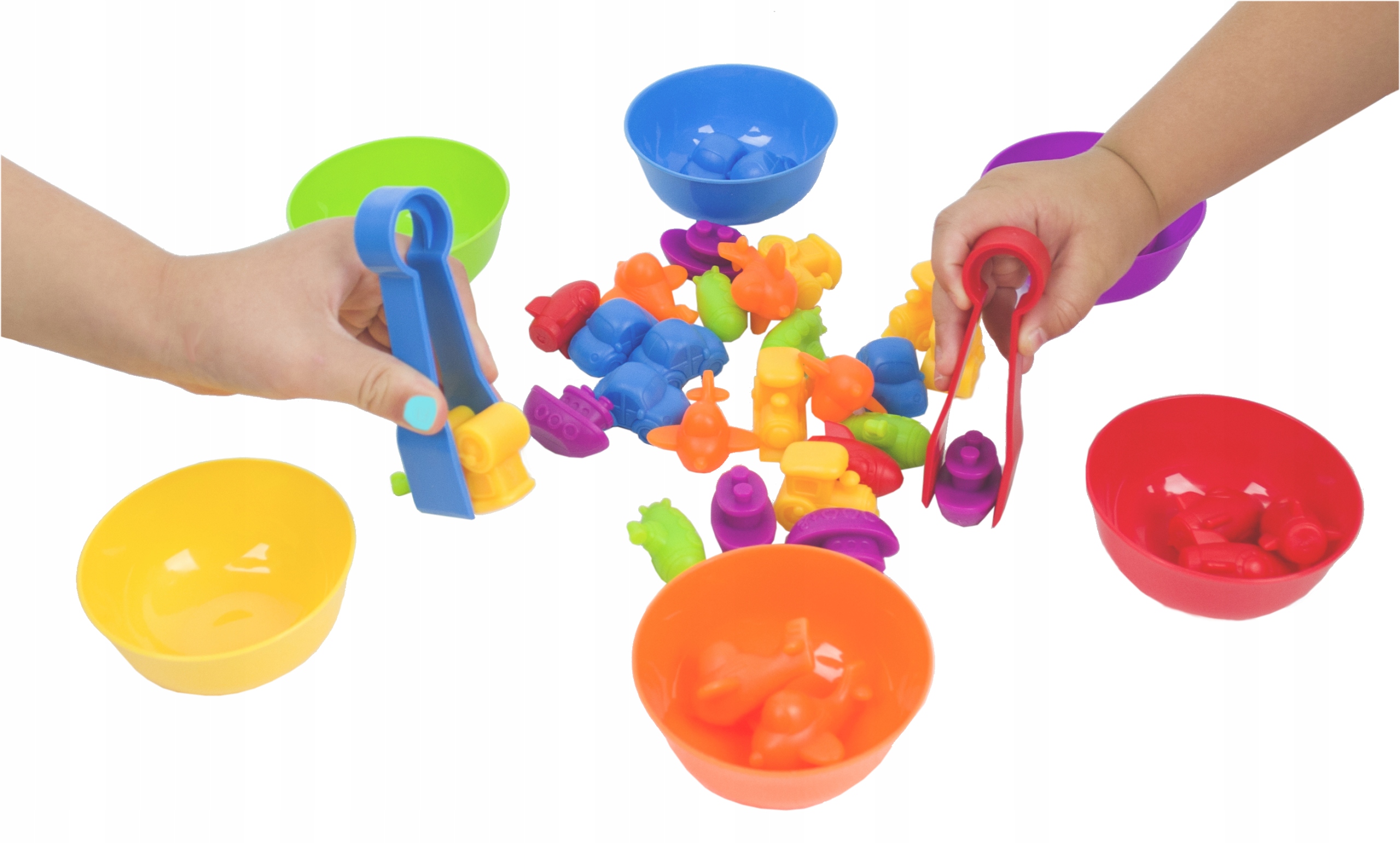Zabawa w sortowanie sprzyja rozwojowi motoryki małej. Dziecko pracując ze szczypcami ćwiczy ruchy dłoni i palców a przy tym szlifuje skupienie i koncentrację a także koordynację wzrokowo-ruchową. Sortowanie ćwiczy logiczne myślenie i otwiera drzwi dla królowej nauk – matematyki. Uczy dziecko dostrzegania podobieństw i różnic między przedmiotami oraz grupowania obiektów o określonej charakterystyce. Jest to uniwersalna zabawka, która spodoba się zarówno dziewczynkom, jak i chłopcom, młodszym i starszym dzieciom.