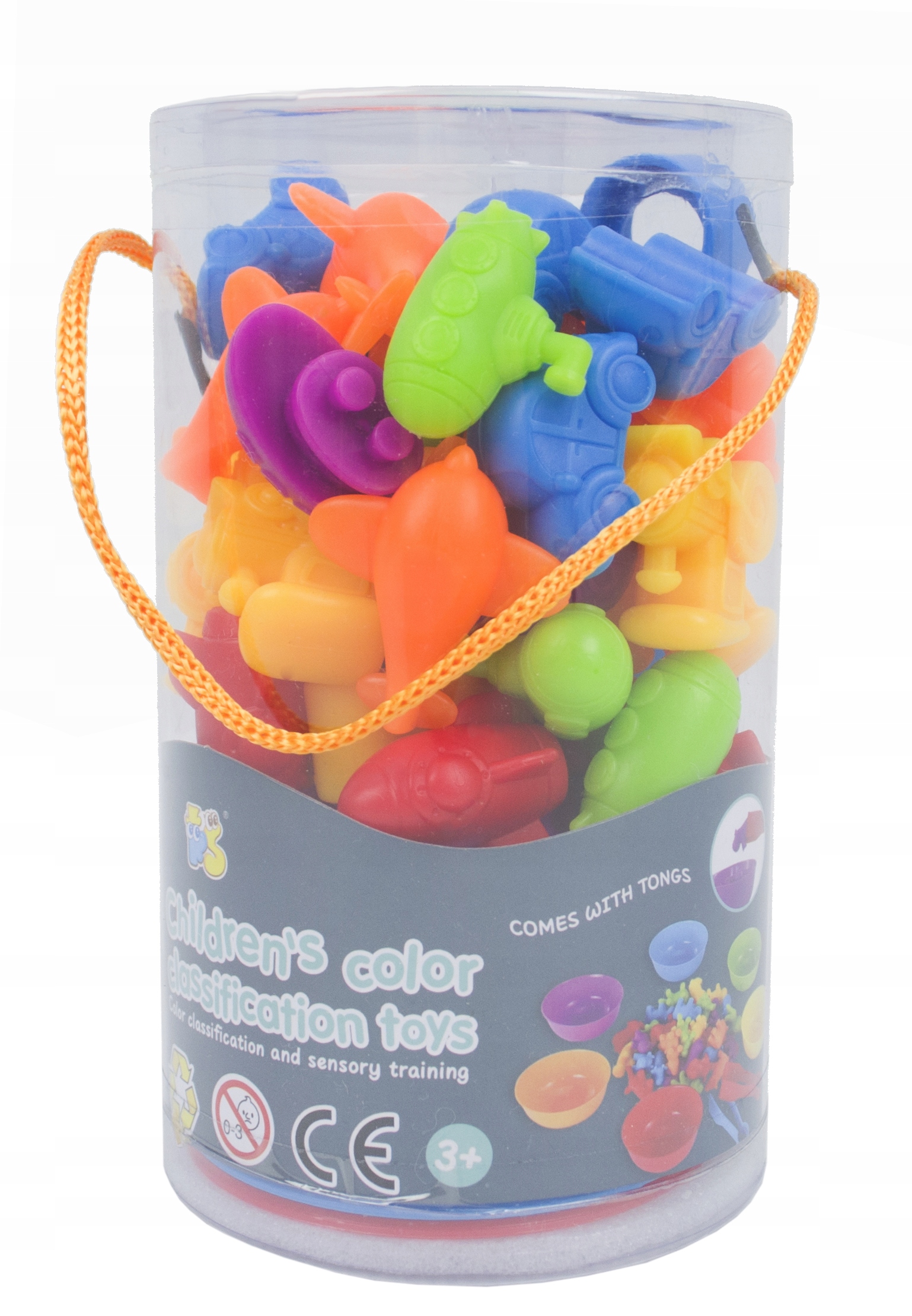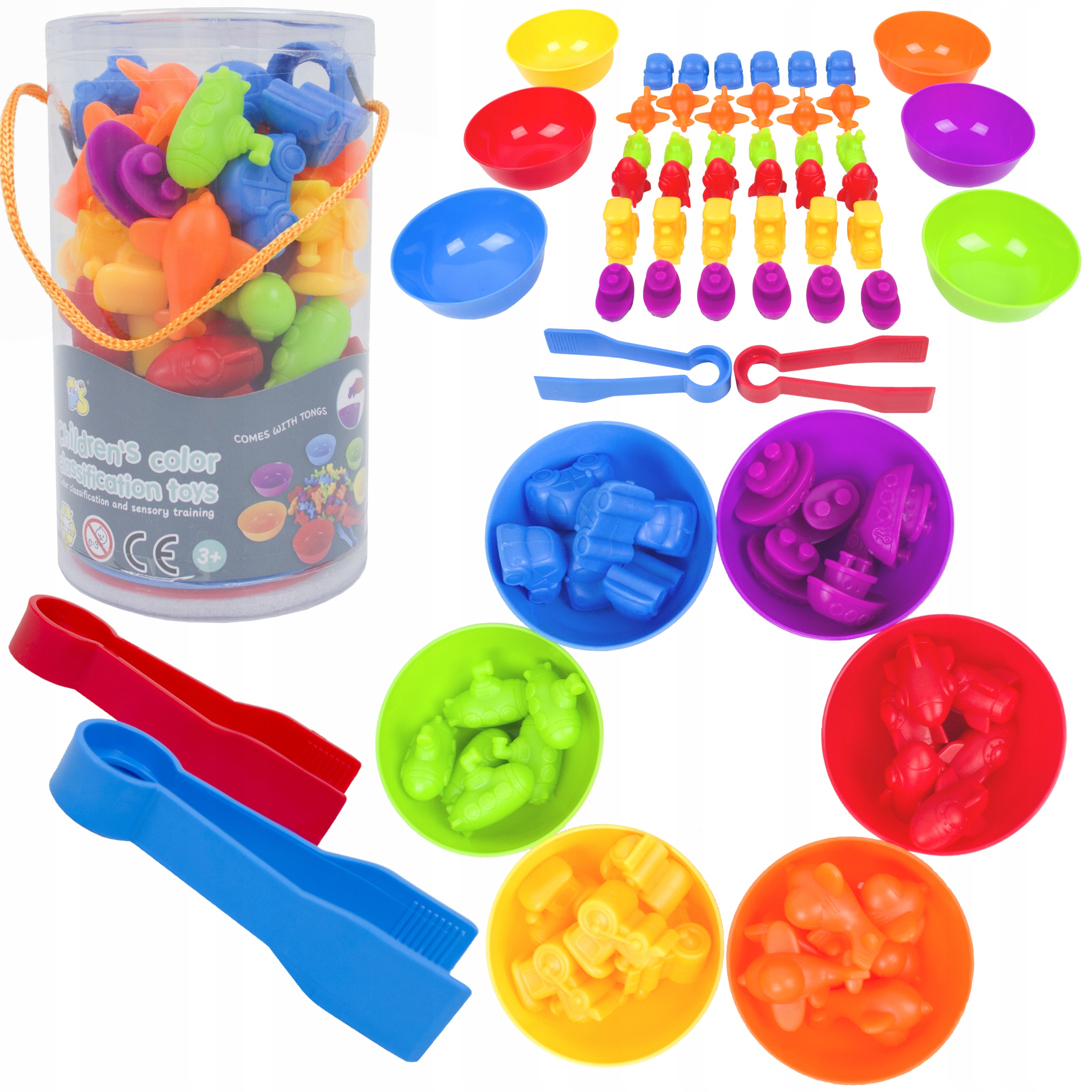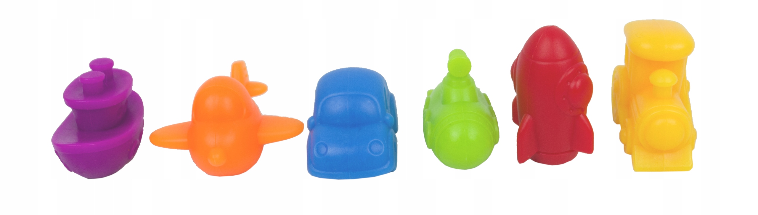 Zestaw składa się z 6 miseczek i 36 figurek (po 6 z każdego koloru). Występują one w barwach podstawowych: czerwony, żółty i niebieski oraz w barwach pochodnych: pomarańczowy, zielony i fioletowy. Jest to doskonały przykład dla dzieci przy nauce mieszania barw. Figurki oprócz odmiennej kolorystyki posiadają różne kształty: statek, samolot, samochód, łódź podwodna, rakieta i lokomotywa.