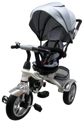 Komfort jazdy zapewniają pompowane koła, antypoślizgowe pedały i regulowana budka. Dzięki modułowej budowie, rowerekmoże służyć jako spacerówka, pojazd rodzicem sterowany, a następnie jako samodzielny rowerek. Wyjątkowe, obracane o 360 stopni siedzisko umożliwia dostosowanie rowerka do aktualnych warunków pogodowych i preferencji malucha.