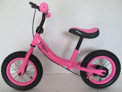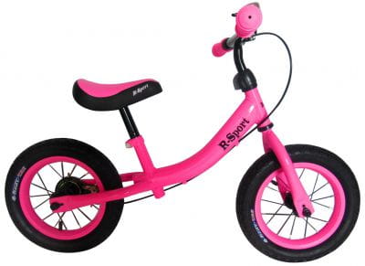 Rowerek biegowy regulowany dla chłopca i dziewczynki z hamulcem i dzwonkiem 2 latka 3 latka R3 różowy R-Sport pompowane koła