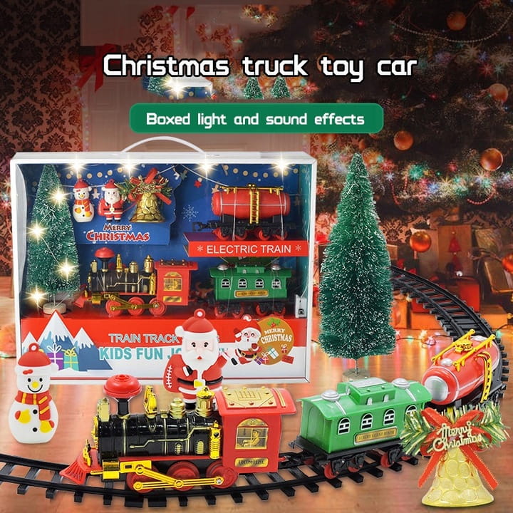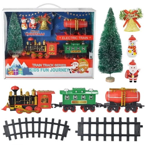 Świąteczna Kolejka Elektryczna na Baterie dla Dzieci - Pociąg z Mikołajem, Bałwanem i Ozdobioną Choinką